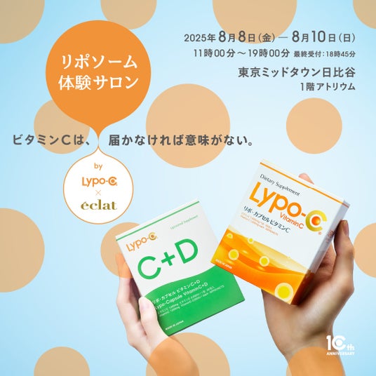 「未来の健康を、つくる。」をミッションに掲げる株式会社スピック(所在地:神奈川県鎌倉市、代表取締役社長:芝田 崇行)は、2025年夏、リポソーム型ビタミンCサプリメント「Lypo-C(リポ・カプセル ビタミンC)」の“届ける力”を体験できるイベント「リポソーム体験サロン by Lypo-C」を、東京・大阪・福岡・名古屋の4都市で開催いたします。