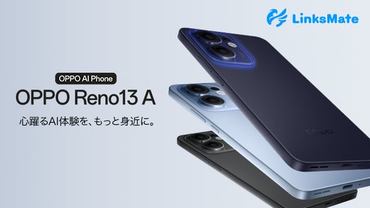 「LinksMate」の販売取り扱い端末として、新たにOPPO製のAndroidスマートフォンの「OPPO Reno13 A」の取り扱いを開始いたします。
