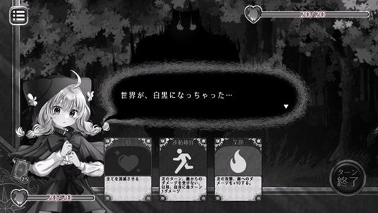 少女の「大切なもの」をコストに戦う、デッキ構築型ローグライクADV。プレイヤーは35枚のカードで構成されるデッキの中から4枚の手札を用いて敵と戦い、刻々と変化するリソースや状態を見極めながら、謎めいた森からの脱出を目指します。