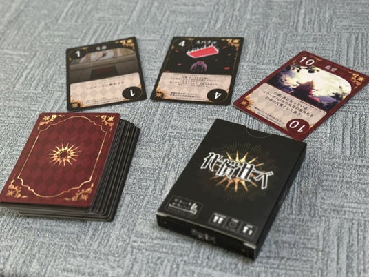 また、同エリアで出展している作品を対象としたスタンプラリーの景品として、本作をモチーフにした対戦カードゲーム『代償比べ』を配布します。奮ってご参加ください。