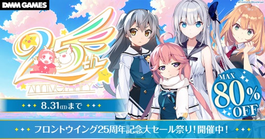 合同会社EXNOA(本社:東京都港区、CEO:村中悠介、URL:https://games.dmm.com/)は、2025年8月1日(金)から2025年8月31日(日)23:59の期間『フロントウイング25周年記念大セール祭り!』を開催いたします。