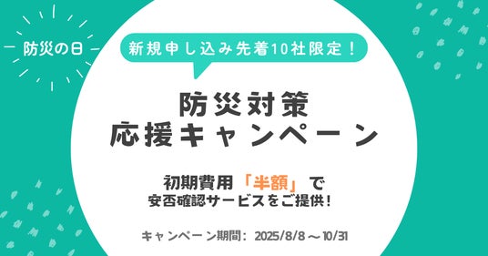 また「防災の日・防災対策応援キャンペーン」を実施中です。当リリースをご覧になった企業様限定で、「初期費用:半額」で『安否確認』サービスをご利用いただけます。