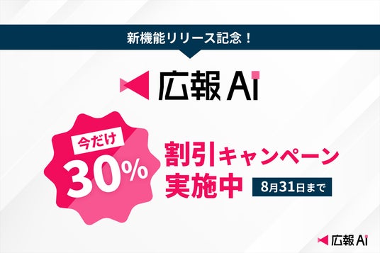8月31日(日)までにご登録いただいた方を対象に、初月30%オフのキャンペーンも実施中です。より使いやすくなった『広報AI』を、ぜひこの機会にお試しください。