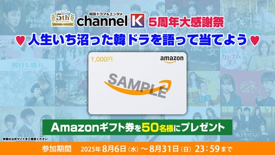さらに!第3弾では、 “人生いち沼った韓ドラ”について語っていただくことで、抽選で50名様にAmazonギフト券が当たる、チャンネルK公式Xフォロワー様参加型イベントも実施中。ぜひこの機会に、フォロワーの皆様方と人生ドラマの魅力を語り合いながら、新たな運命ドラマとの出会いやプレゼントをゲットしてみませんか?
