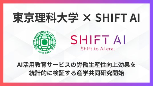 「日本をAI先進国に」を掲げ、利用者数No.1※のAI大学「SHIFT AI」を運営する株式会社SHIFT AI(東京都渋谷区、代表取締役 木内翔大)は、AI活用教育サービスが労働生産性などの向上に与える影響を科学的に検証するため、学校法人東京理科大学と産学共同研究契約を締結しました。本研究では、統計学的手法を用いたアンケート調査とデータ解析を通じて、AI教育サービスの実証的効果測定を行います。