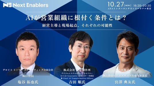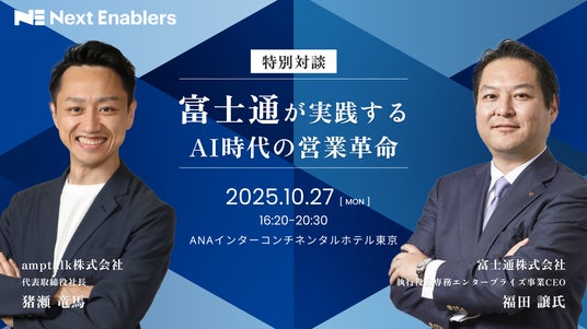 「人と人が向き合う時間を最大化する」をミッションに、企業の営業変革およびセールスイネーブルメントの実現を支援するamptalk株式会社(本社:東京都渋谷区、代表取締役:猪瀬 竜馬、以下 amptalk)は、2025年10月27日(月)、「生成AIが切り拓く、次世代の営業組織変革」をテーマにした大企業向けセールスイネーブルメントカンファレンス「Next Enablers 2025 Autumn」をANAインターコンチネンタルホテル東京にて開催します。