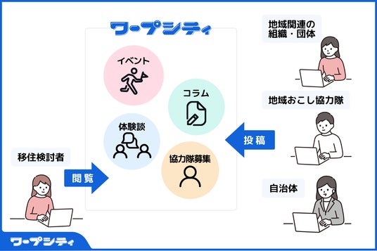 また、SNSや地域メディアの発展により、自治体だけでなく地域おこし協力隊・NPOなどが発信の担い手として重要な役割を果たす時代になっています。 しかし、これまでワープシティでは自治体以外による情報発信の仕組みがなく、地域の多様な魅力や実践者の声を届ける機会が限られていました。