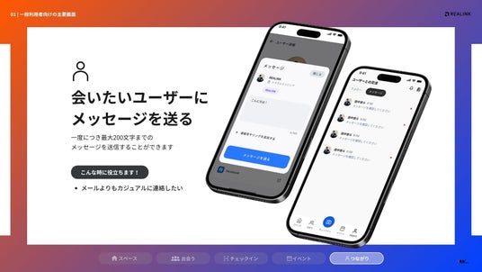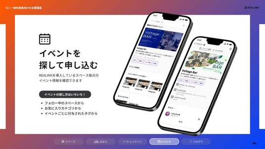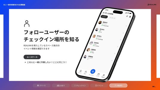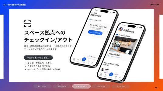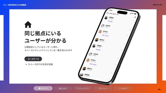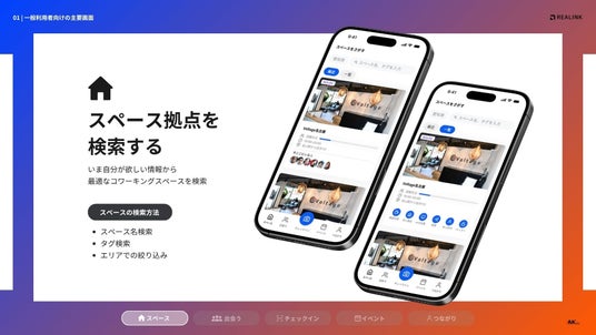 コワーキングスペース事業を中心に展開する株式会社VMK(本社:愛知県名古屋市中区、代表:田中 優大)は、2025年8月18日(月)より、スペースで繋がるコミュニティアプリ「REALINK」をリリースします。スペース運営事業から見えた施設事業者の課題や、スペース利用者の交流ニーズを拾い上げ、場を起点としたコミュニティを活性化させるインフラシステムとして独自開発しました。