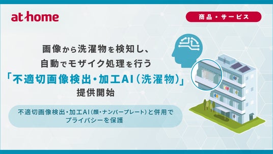 不動産情報サービスのアットホーム株式会社(本社:東京都大田区 代表取締役社長:鶴森 康史 以下、アットホーム)は、画像から洗濯物を検知し、自動でモザイク処理を行う「不適切画像検出・加工AI(洗濯物)」の提供を開始いたします。本サービスは、グループ会社であるデータ解析事業のアットホームラボ株式会社(所在地:東京都千代田区 代表取締役社長:大武 義隆 以下、アットホームラボ)が開発したAIモデルを活用しています。