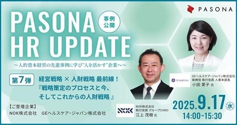 株式会社パソナは、経営企画部門や人事部門の方々に向けた人的資本経営をテーマにしたウェビナー「PASONA HR UPDATE」を、9月17日(水)に開催いたします。
