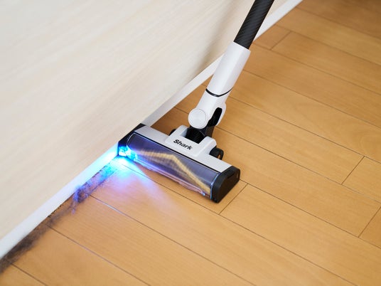また、掃除性能と耐久性を向上させながら、静音性を大幅に改善した新開発のブラシロールや、ゴミの視認性をあげる青色LEDヘッドライトを新搭載。Shark独自の「自動ゴミ収集ドック」のデザインをリニューアルし、さらに使い勝手を向上させました。