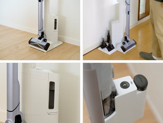 「自動ゴミ収集ドック」搭載により、掃除機本体をドックに戻すだけで充電しながら本体からゴミを自動で収集できます。約30日分のゴミを溜めておけるため(※5)、面倒なゴミ捨てを月1回に減らすことが可能です。これにより、ゴミが空気中に飛び散らない、手が汚れない、紙パック不要で無駄なコストがかからない、掃除機本体のダストカップが毎回空になることで最適な掃除力の維持が可能、というメリットがあります。