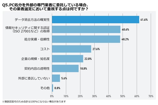 Q5.PC処分を外部の専門業者に委託している場合、その業者選定において重視する点は何ですか?(複数回答可)