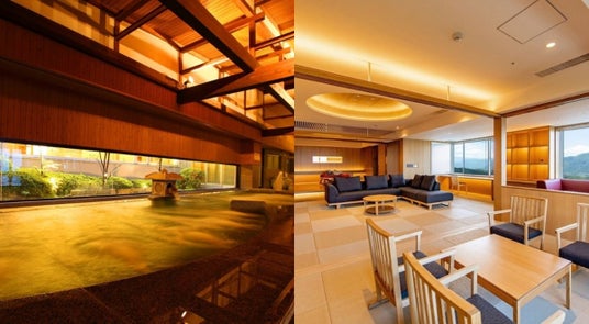 温泉は、「湯畑」「万代鉱」「わたの湯」の3源泉を保有し、ホテル館内で湯めぐりが楽しめる。
