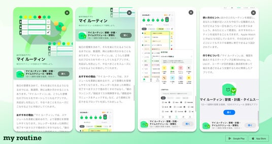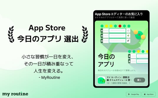 マイルーティンの担当者は「今回の『今日のアプリ』選出は、日本のユーザーの皆さまからの継続的な関心とフィードバックのおかげです」と語り、