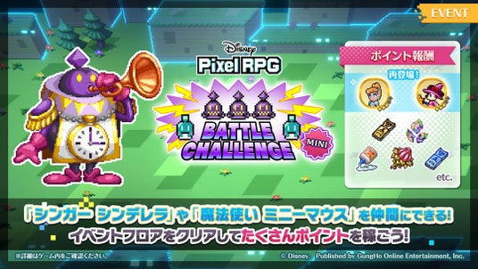 その他、「シンガー シンデレラ」、「魔法使い ミニーマウス」のメダルや、豪華報酬がラインナップされた期間限定イベント「BATTLE CHALLENGE MINI」も開催いたします。