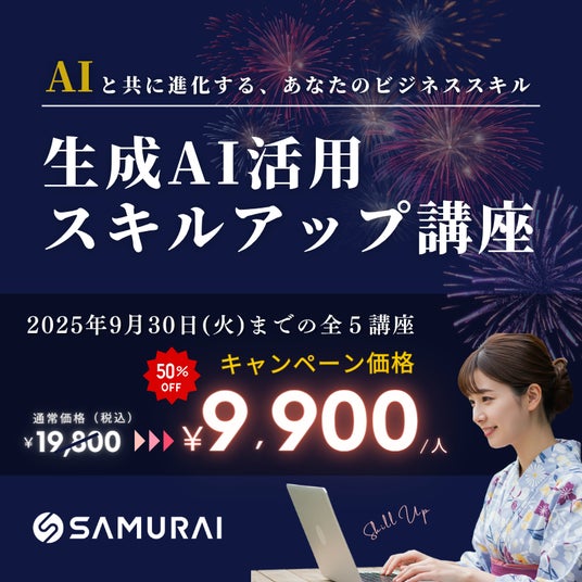 プログラミングスクール『侍エンジニア』を運営する株式会社SAMURAI(本社:東京都港区、代表取締役:羽田 吾立)は、2025年8月27日(水)・28日(木)に東京国際フォーラムで開催される『AI博覧会2025 Summer』に出展いたします。