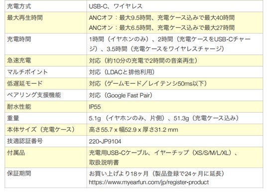 公式サイト:https://www.myearfun.com/jp/headphones/earfun-air-pro-4i-anc-true-wireless-earbuds-black
