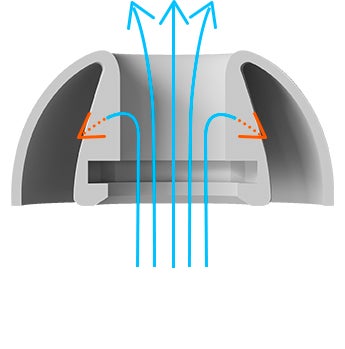 オーバル状の音筒部をより大きく短い構造にすることで、音の分散を抑えつつ音の方向を集中させることが可能となり、音質向上とノイズキャンセリング効果の改善を実現しました。イヤーピースも素材が異なる二重構造に変更、音質向上を図っています。軸部分には硬めの素材を使用し基礎部分の固定力を改良、低音を逃さず鼓膜まで伝えることが可能になりました。傘部分はより薄くすることで、多くの方の耳道にナチュラルフィットし、装着していることを忘れるような快適なつけ心地を実現しています。