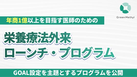 株式会社グリーンメチル(本社:埼玉県さいたま市、代表取締役:小林良太)は、「栄養療法外来ローンチ・プログラム」における中核プログラムとして、GOAL設定を主題とするプログラムを提供いたします。