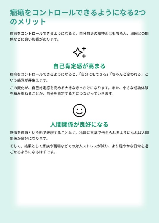 本資料では、こうした悩みを抱える方に寄り添い、大人の癇癪の原因や背景、コントロール方法をわかりやすく解説したガイドブックを無料公開いたしました。