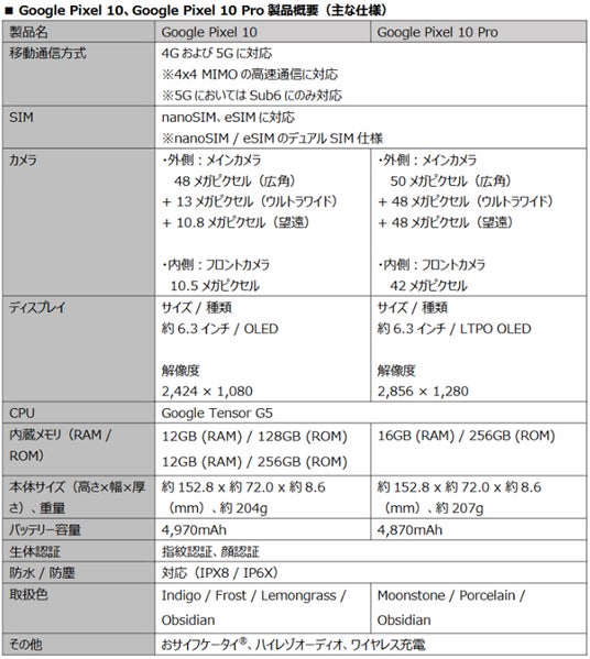 「Google Pixel 10」、「Google Pixel 10 Pro」