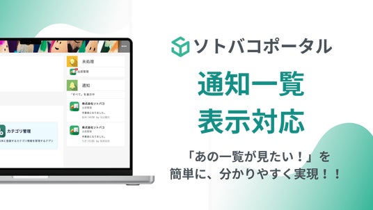 株式会社ソトバコ.(本社:福岡県福岡市)は、「ソトバコポータル」にてkintoneの各アプリの通知一覧表示に対応しました。ポータル上で各ユーザーに届いた通知が表示されることで、肥大化していくタスク管理を容易にし、各業務の効率化に大きく貢献します。