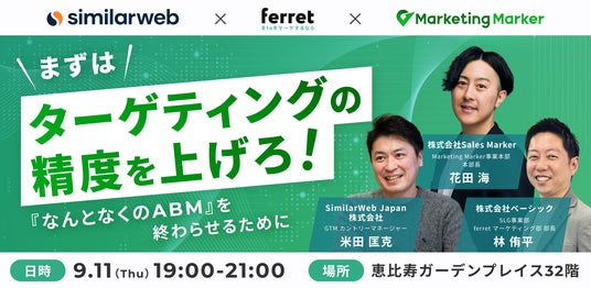 本イベントでは、大手企業開拓に挑むスタートアップ・SMB企業の営業・マーケティング責任者の方々に向けて、“なんとなくのABM”から脱却し、商談機会を最大化するための「ターゲティング精度の高め方」を徹底解説します。展示会だけでは語り尽くせないプロダクトの魅力もお届けいたします。