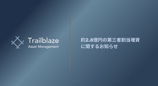 アジア太平洋および米国市場における投資機会の限られた分野に注目し、プライベートクレジットおよびスペシャルシチュエーションを中核とした、経済変動と相関しないオルタナティブ投資戦略を通じて、安定性と収益性を両立したリターンの創出を目指す、株式会社Trailblaze Asset Management(CEO&Managing Partner:米田 尚輝、本社:東京都港区) は、株式会社グロービス、グローブアドバイザーズベンチャーズLLP、弁護士ドットコム株式会社、その他ファミリーオフィスおよび個人投資家を引受先とする第三者割当増資を実施し、総額約2.8億円の調達を完了しました。