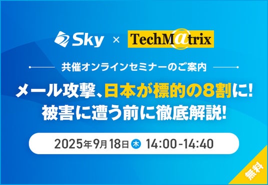日程:2025年9月18日(木)14:00~14:40主催:Sky株式会社、テクマトリックス株式会社