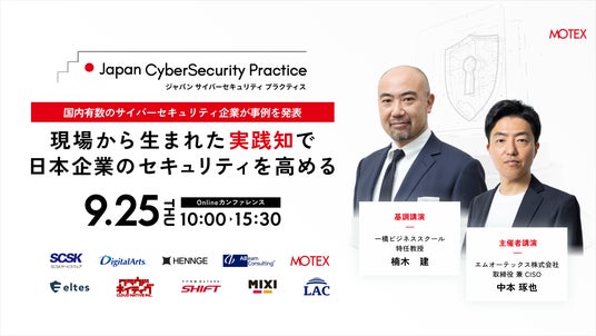 エムオーテックス株式会社(本社:大阪市淀川区、代表取締役社長:徳毛 博幸、以下MOTEX)は、2025年9月25日(木)、日本企業のセキュリティレベル向上への寄与を目指すオンラインカンファレンス「Japan CyberSecurity Practice 2025 Autumn」を開催します。
