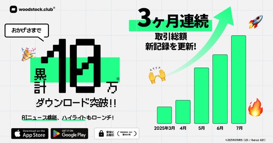 10万ダウンロード突破!月額取引総額で3ヶ月連続新記録達成!