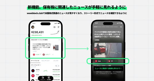この度、生成AIを活用したAIニュース機能”ハイライト”をローンチいたしました。ご自身のポートフォリオ内の銘柄に関連したニュースを、この機能によって読むことができます。生成AIのサポートにより、国内ではなかなか見つけることのできなかった、米国株関連のニュースを分かりやすくまとめて表示しています。ご自身のポートフォリオ内の株価の変動を確認しつつ、その背景にあるニュースを手軽に見ることができるため、市場の動きをいち早くつかむことができる機能です。