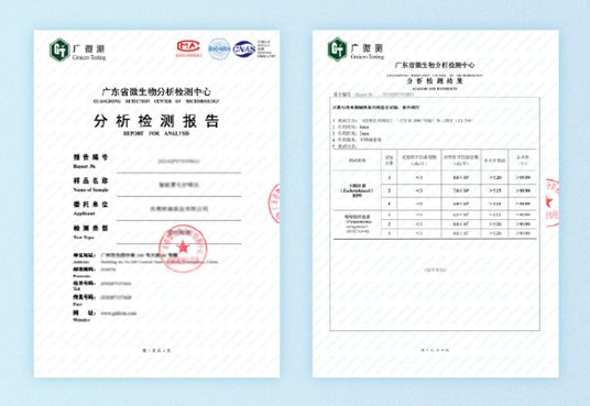 第三者機関「GUANGDONG CENTER OF MICROBIOLOGY」による抗菌性に関する試験を実施。