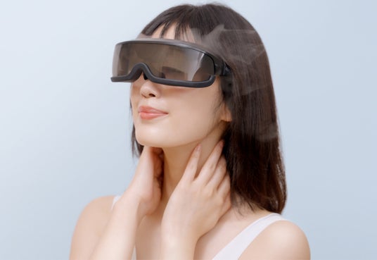 耳かけ式のメガネデザインを採用しており、ベルト型のように髪型を崩したり装着跡が残ったりする心配がありません。わずか125gの軽量設計に加え、動作音は約30dBと静かで、長時間の使用でも快適に過ごせます。