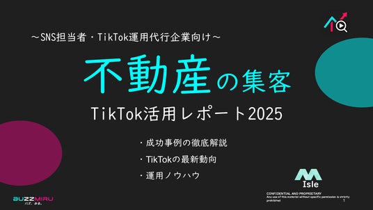 TikTok分析ツール 「BUZZMIRU」を販売する株式会社Isle(本社:東京都新宿区、共同代表:西森大祐・成宮邦亮)は、不動産業界のSNSご担当者さま向けに 『2025年版 TikTokトレンドレポート』 を無料公開しました。