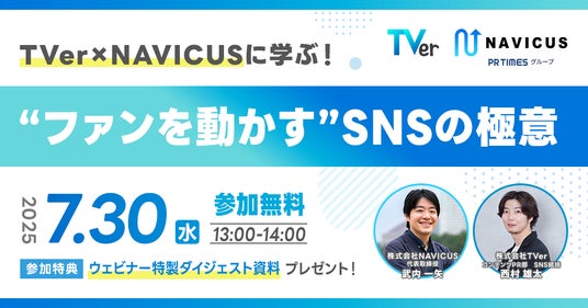 SNSを通じて企業様や地方自治体様のコミュニケーション支援サービスを提供する株式会社NAVICUS(本社:東京都千代田区、代表取締役:武内 一矢、以下:NAVICUS)は、2025年7月30日(水)に無料ウェビナー「TVer×NAVICUSに学ぶ!“ファンを動かす”SNSの極意」を開催しました。