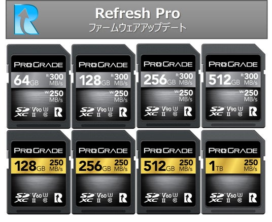 プログレードデジタル製メモリーカードは、プログレードデジタル製カードリーダーとの組み合わせで、メモリーカードメインテナンスソフトウェアRefresh Proを利用することで、最新ファームウェアのアップデートすることができます。メモリーカードのファームウェア更新は、多くの場合、高性能化するデジタルカメラやデジタルビデオカメラの多様な機能への対応、未知であったバグの修正などのために行われます。できるだけ速やかなファームウェアの更新をお勧めしています。