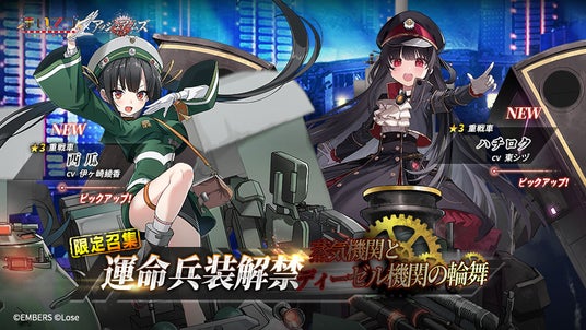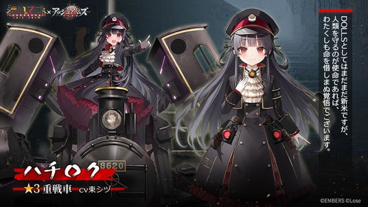 コラボ開催に合わせ、『まいてつ』で「レイルロオド」と呼ばれるメインキャラクターがゲーム内に新規参戦します。コラボ前半では以下のコラボ限定DOLLSが登場します。