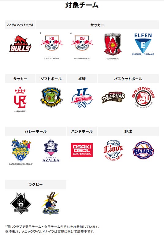 ※埼玉パナソニックワイルドナイツは実施に向けて調整中です。