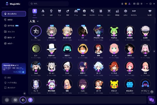 - リアルタイム変声: MagicMicを使用すれば、通話やゲーム中にリアルタイムで自分の声を変換することができます。例えば、男性の声を女性の声に変える、ロボット声やアニメ・ゲームキャラの声など、様々な音声エフェクトが利用可能です。