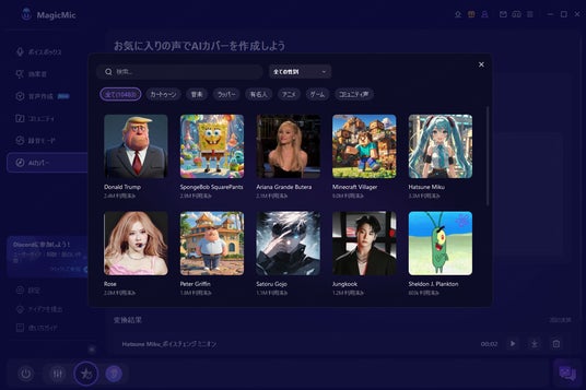 MagicMicは、高精度のRVC音声モデルを搭載し、高品質&低遅延の音声変換サービスを提供する最先端のボイスチェンジャーです。PCやスマホで動作し、350+音声フィルターを使用することができ、Discord、LINE、Fortnite、Apex、OBSなどの主流ゲームや配信ソフトで声を変えることも可能です。また、800+効果音や背景音が自由に再生でき、ボイストレーニングで自分だけの声を作成できます。