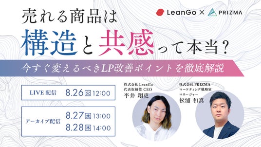 本セミナーでは、LPOのプロ《LeanGo》と漫画クリエイティブのプロ《PRIZMA》が共催し、「構造×ストーリー」によるLP改善の実践ノウハウを徹底解説します。