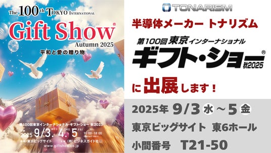半導体メーカー/商社のトナリズム株式会社(本社:神奈川県川崎市/代表取締役:新川裕也/以下、トナリズム)は、2025年9月3日(水)~9月5日(金)まで東京ビッグサイトにて開催される「第100回 東京インターナショナル・ギフト・ショー秋 2025」に、OEM/ODM事業のパートナー企業として初出展することをお知らせいたします。