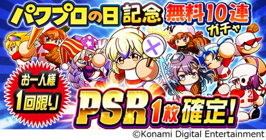 期間中、「パワプロの日記念無料10連ガチャ」を回すと「PSR」のイベキャラ1枚が確定で出現!