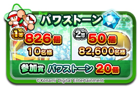 抽選で10名様にパワストーン826個、82,600名様にパワストーン50個をプレゼント!当たらなかった場合でも、参加賞としてパワストーン20個がもらえます。