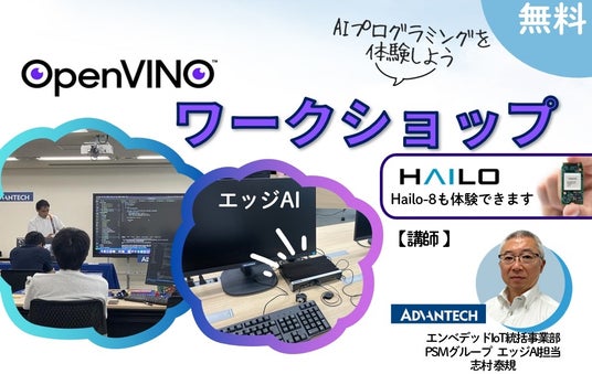 AIアプリケーションの開発に興味がある方を対象とした、初級~中級向けのワークショップを開催します。1人1台のエッジAIパソコンで、OpneVINOやHailo-8のAIプログラミングを行います。