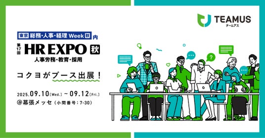 コクヨ株式会社(本社:大阪市/社長:黒田英邦)は、幕張メッセにて開催される「第17回 HR EXPO【秋】(人事労務・教育・採用)」に、組織成長ソリューション「TEAMUS(チームアス)」を出展します。