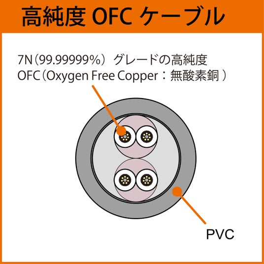 度OFC(Oxygen Free Copper:無酸素銅)ケーブルを内部配線材と付属のアン