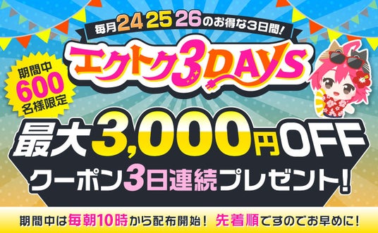 当店では「エクトク3DAYS」のクーポン以外にも、お得な割引クーポンが豊富にございます。